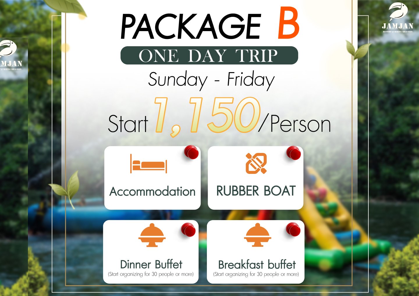 (1 raft per 10 people; depart from Jamjarn Resort's private pier,